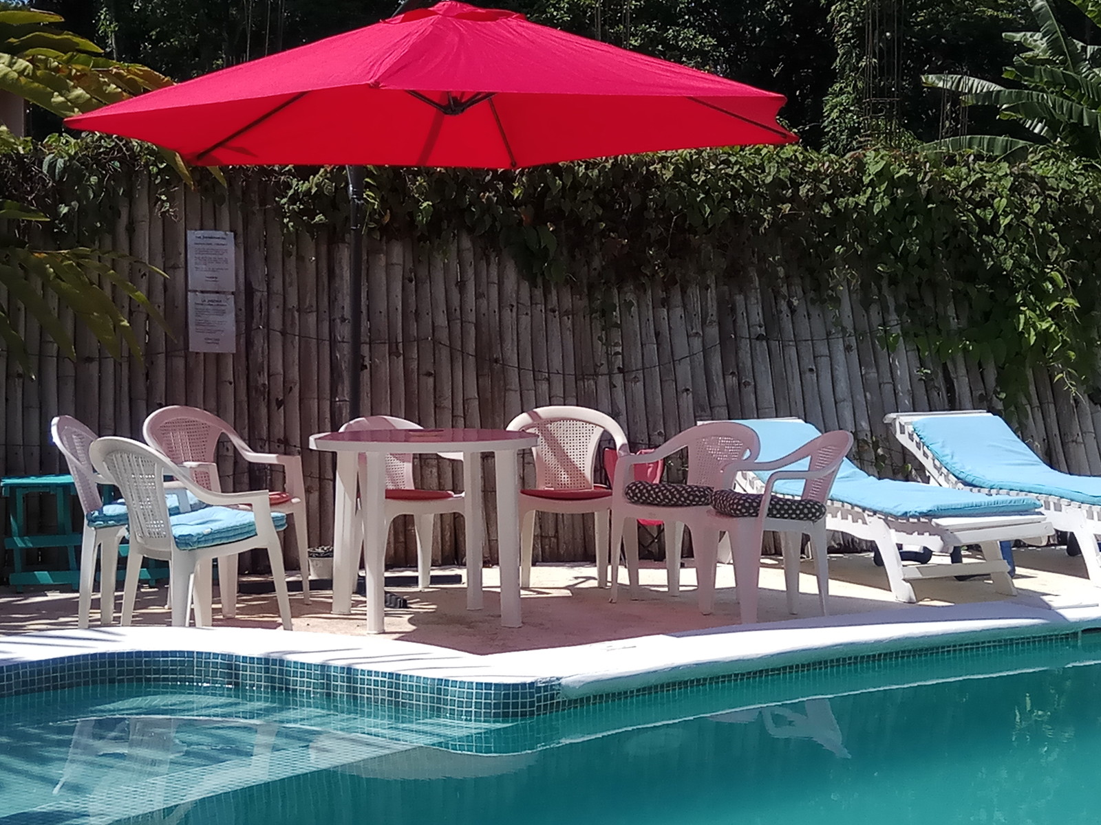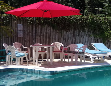 Room Facilities Outside: Private entrance and patio with table and chairs. Directly in front of the pool. Racks for towel drying. All guests are welcome to use our training racks.