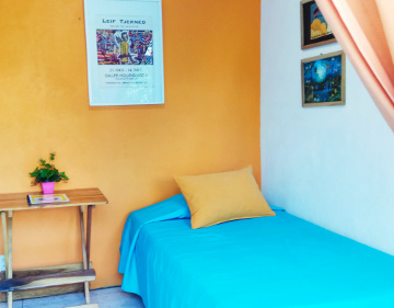 BALDER is a nice option for a couple wanting a little extra space as it has two rooms divided by a sliding door. BALDER also works well for 3 people as it has both a double bed and a single in the other part. As a guest in BALDER you have access to our outdoor kitchen right around the corner, with cooking facilities and equipment, as well as a refrigerator to keep your food and drinks cold.